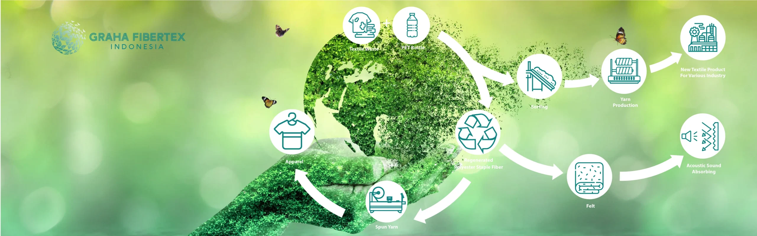 PT. Graha Fibertex Indonesia, we exist as the latest breakthrough, creating an environmental friendly solution that supports our customers. With more than 10 years of experience and continuous improvement, we finally find the best formulation of leading and innovative products.We are commited on the principle of 3R (Reuse, Reduce and Recycle) to make the world a better place.